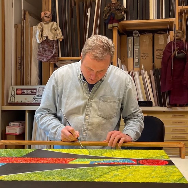 As a printmaker and designer, I enjoy the spontaneity of monotype printmaking and also design sculptures in laser-cut steel.