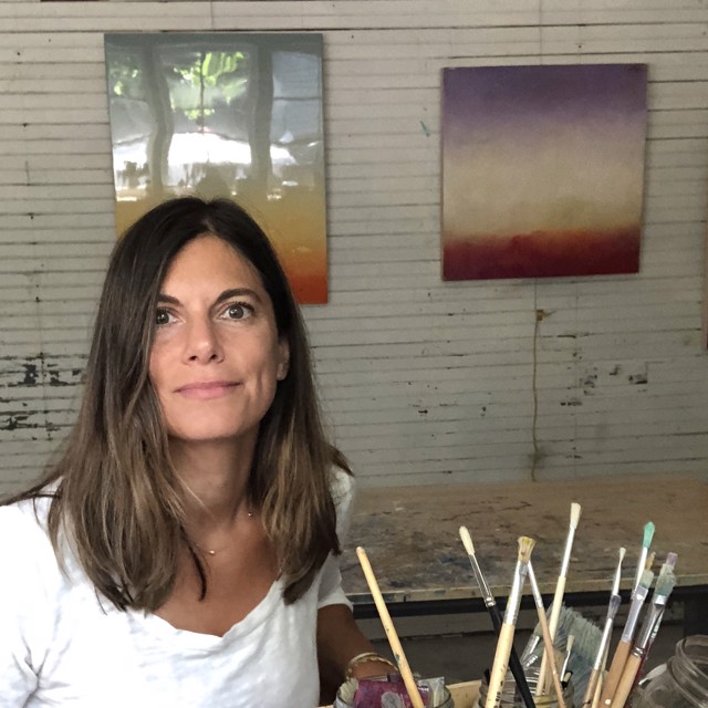 Ericka invites the viewer to enter the painting, slow down, unclench, and access the soft, blurry consciousness of waking up. She encourages viewers to sink into the luminous light of the horizon before the sun sets, when the mind is quiet and open to what surfaces from the stillness. She believes that the sky serves as the perfect metaphor for life’s expansiveness—whether open and light or dark and ominous. Ultimately, it is beautiful in its vibrancy, duality, and impermanence. As Pema Chödrön wrote, “You are the sky. Everything else—it’s just the weather.”