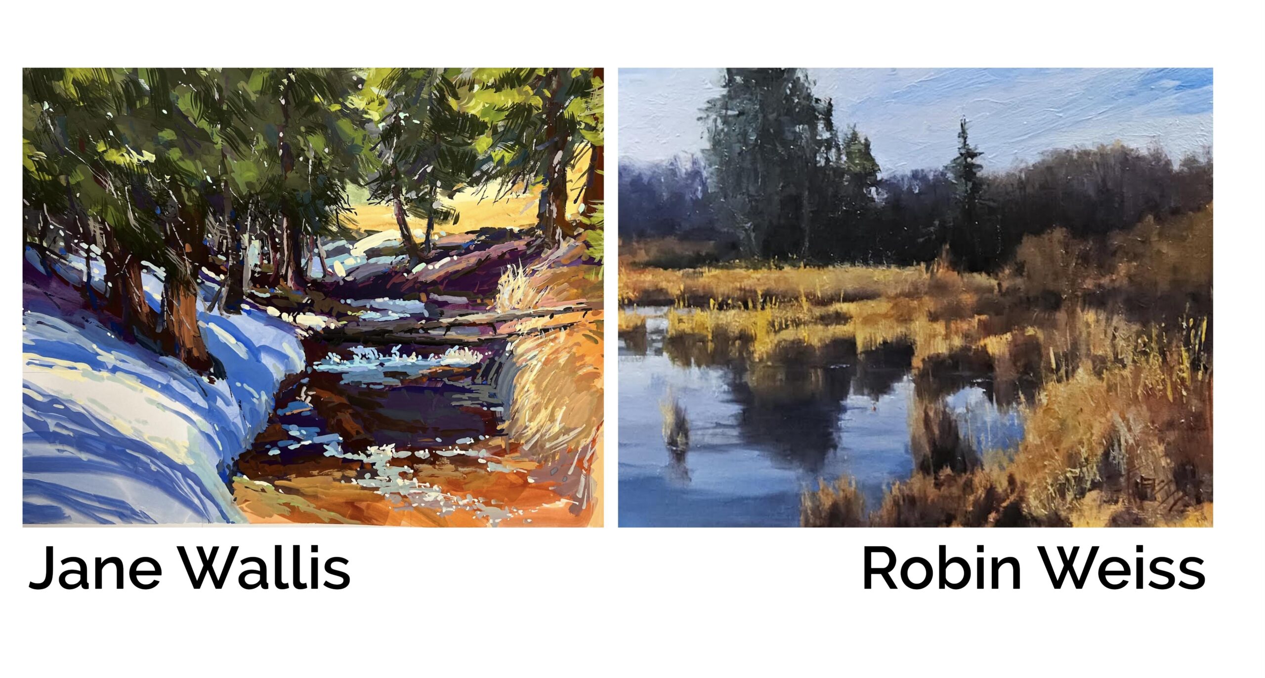 Left: A SnowMelt Stream, Gouache15x19 Right: Washington Wetlands, Oil 14×18