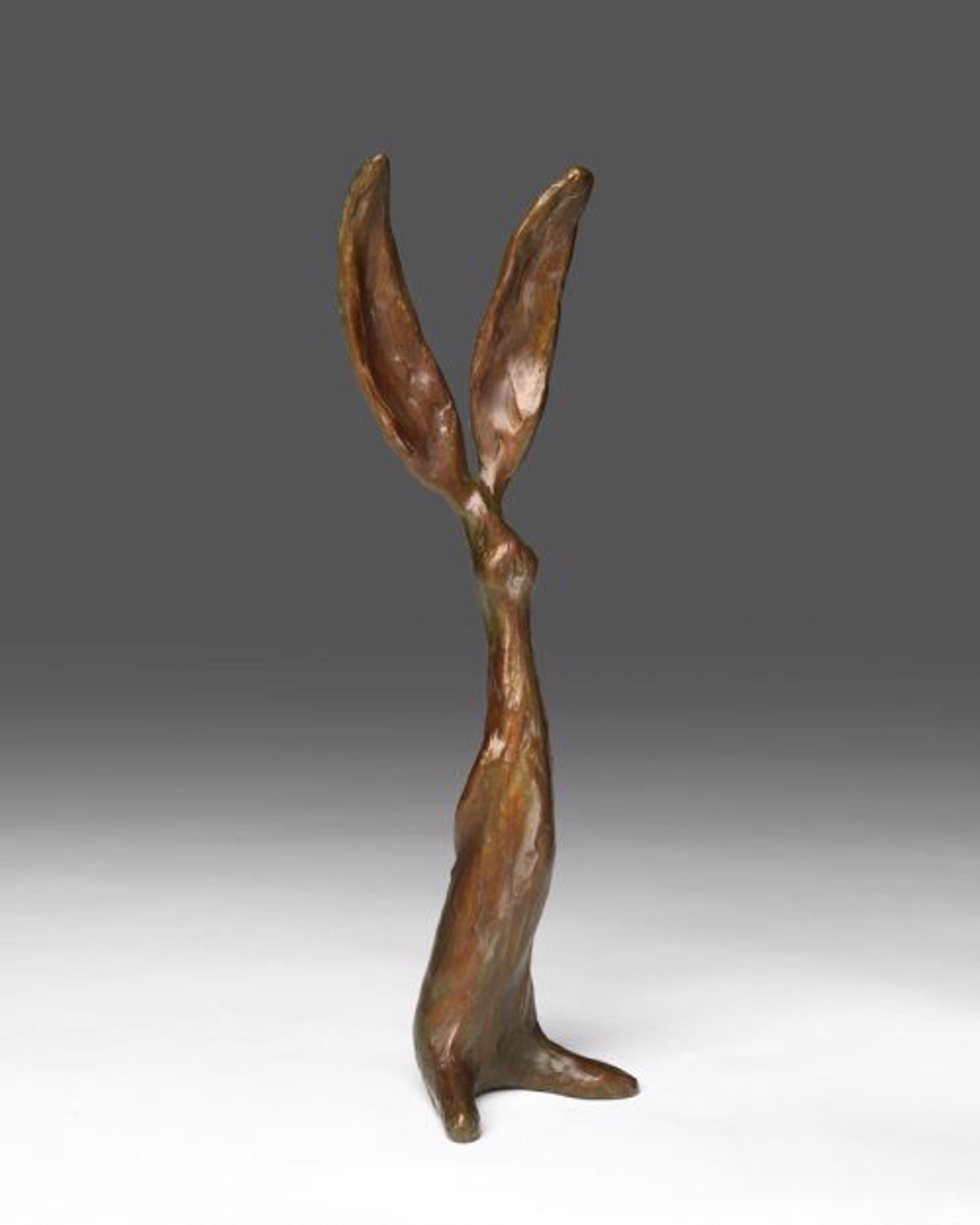Wolf, inspired by color field painters, aims to create expressions that are intentionally uncomplicated yet deeply reflective. Her pieces invite viewers to slow down and immerse themselves in the serene expanses of color, evoking the soft, blurry consciousness of waking up.