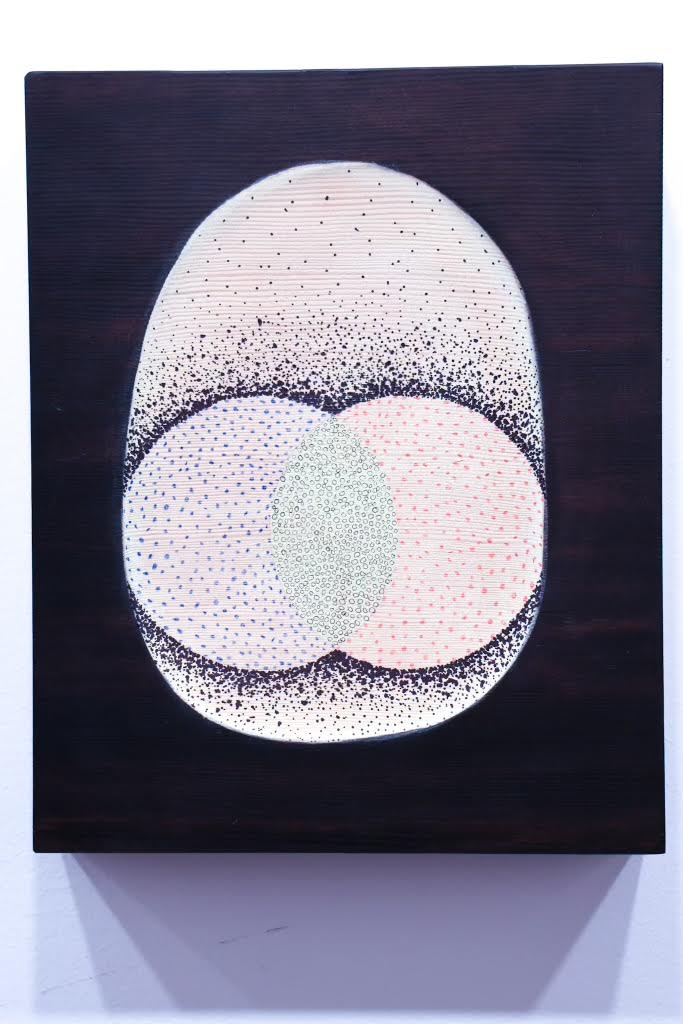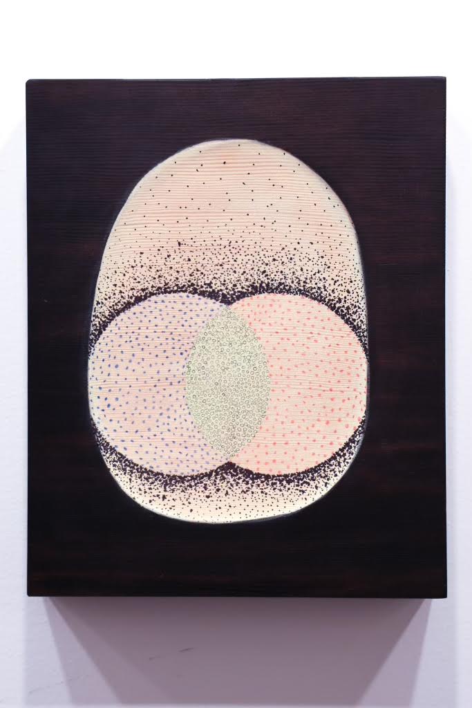 Salvaged Vertical Grain Fir, Black Oil Stain, Red+Blue Correction Pencil, Archival Ink and Acrylic paint