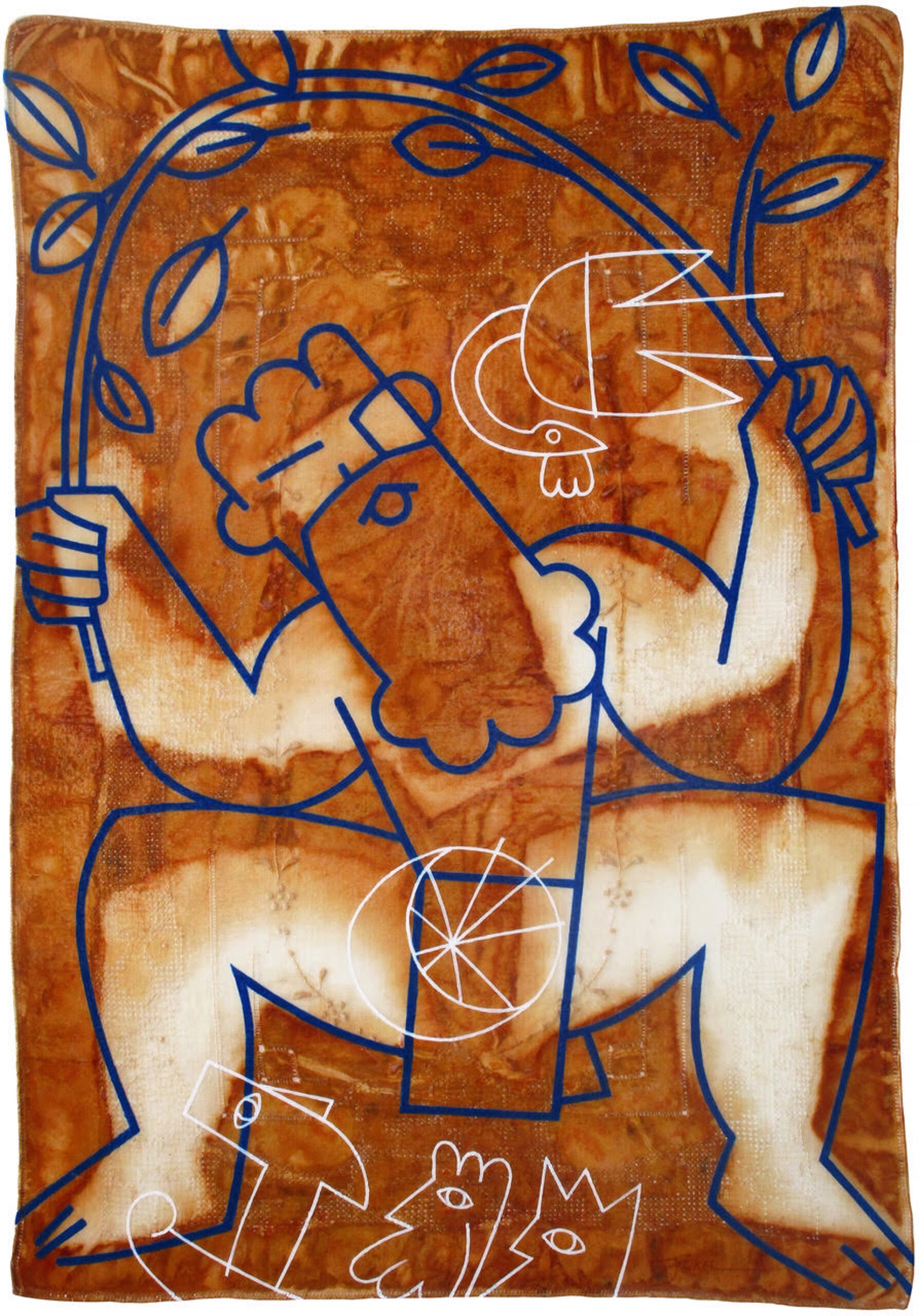 Rust, Vintage Linen, Acrylic Paint, Mounted to Wood Panel