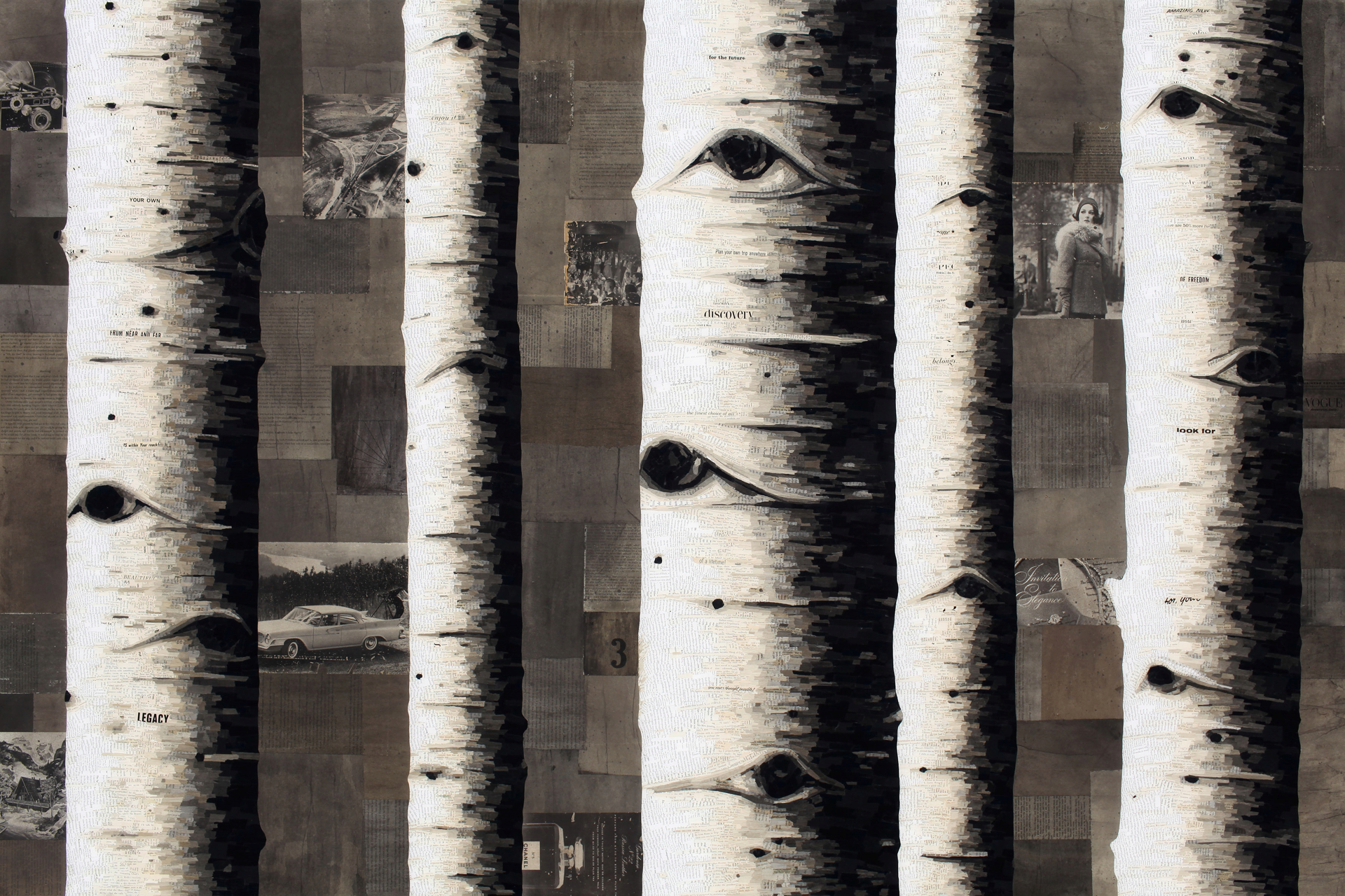 Vintage Torn Paper Collage Under Resin on Panel