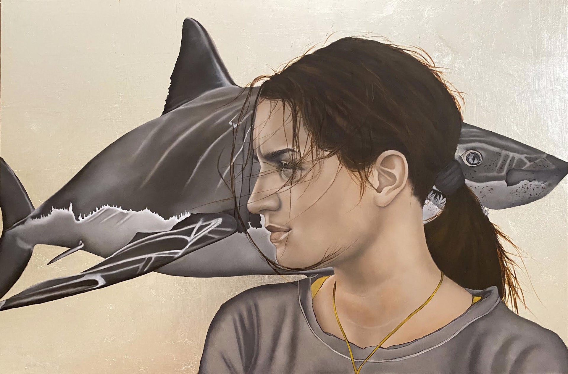 Oil And White Gold Leaf On Aluminum Panel