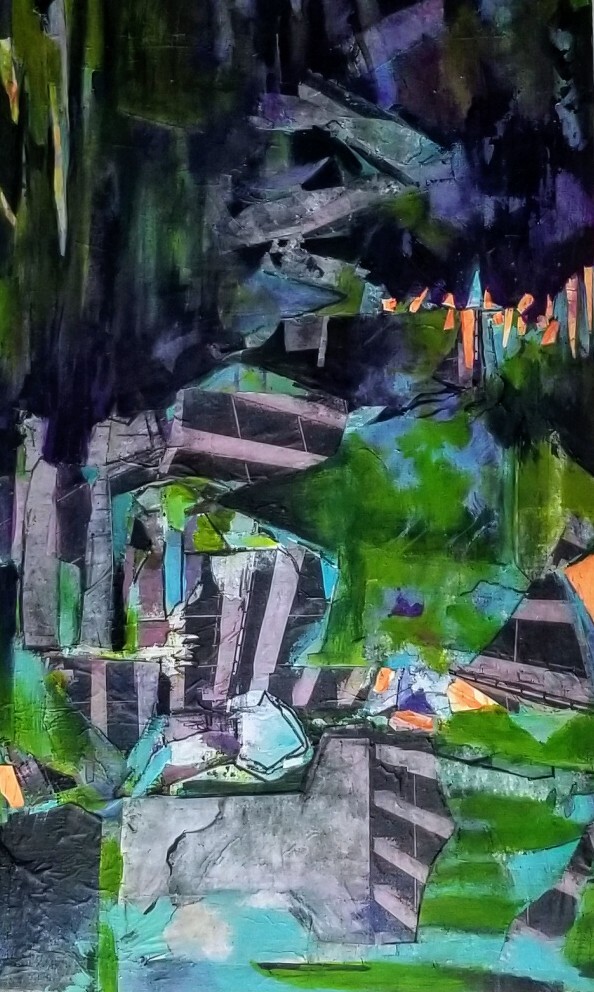 Mixed Media: Acrylic Paint, Photo Transfer, Paper Collage, Charcoal and Graphite